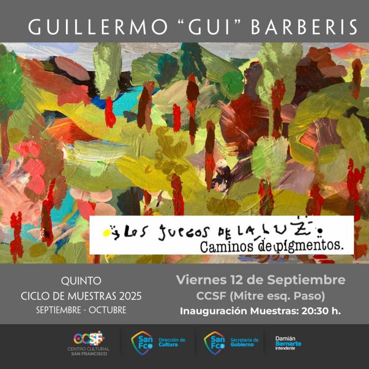 El próximo viernes 12, a partir de las 20.30, se inaugurará el quinto ciclo de muestras denominado ‘Los juegos de la luz. Caminos de Pigmentos’, de Guillermo “Gui” Barberis; “Dicho”, de Marcos Bertone y “Secuencia”, de Damián Ontivero.