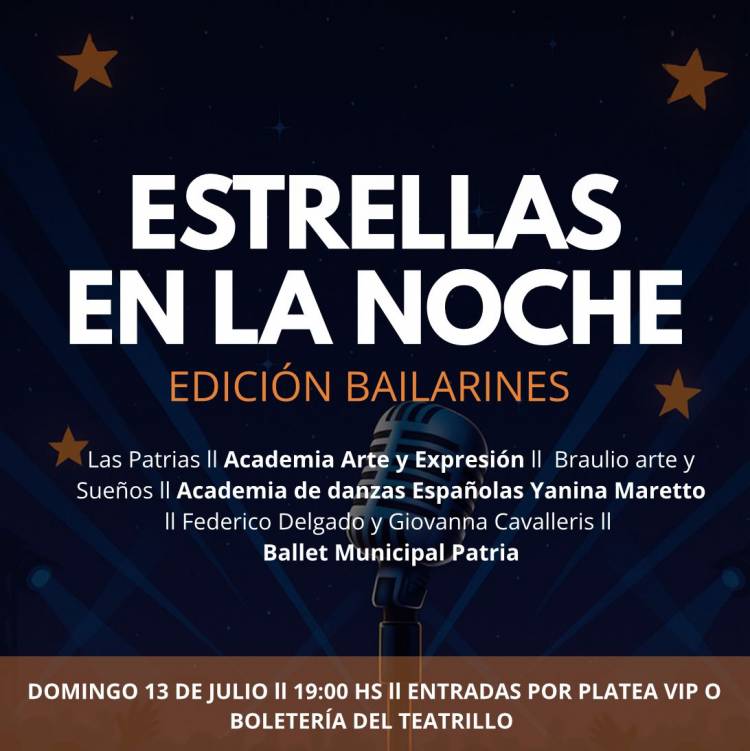 Domingo 13 de julio, 19 hs: “Estrellas en la noche – Edición Danza”