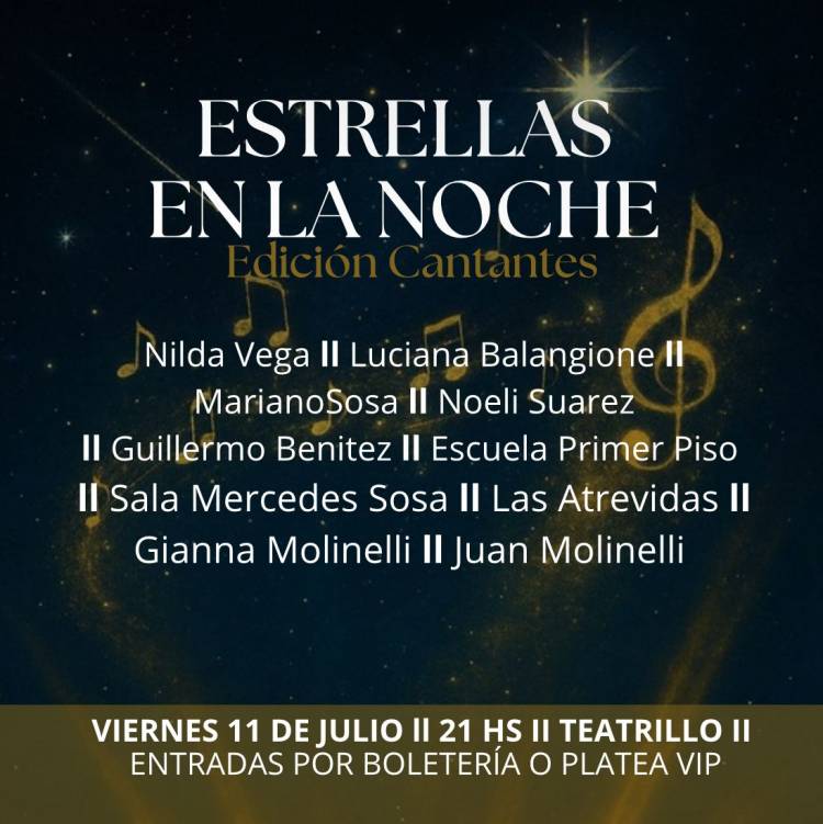 Viernes 11 de julio, 21 hs: “Estrrellas en la noche, edición cantantes