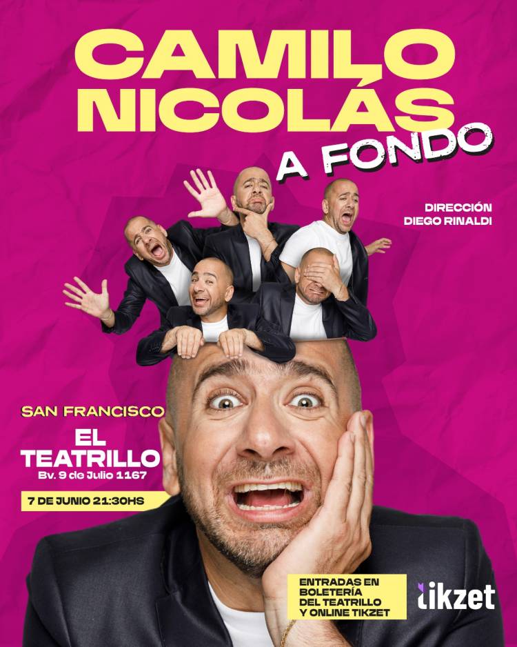 Camilo Nicolás presenta su nuevo unipersonal A Fondo en el Teatrillo. Una propuesta que recorre con humor la identidad cordobesa, con música original, pantallas y la frescura de la improvisación. A Fondo es mucho más que un show de stand up: es una experiencia teatral integral donde el público se convierte en parte activa de la función. Monólogos, personajes hilarantes, improvisación y una constante interacción con la audiencia son los pilares de esta propuesta que rinde homenaje a la cultura cordobesa, su gente, sus paisajes, su música y su humor. Con dirección de Diego Rinaldi, la puesta en escena se enriquece con pantallas, efectos visuales y una banda sonora original, logrando una propuesta moderna, dinámica y para todos los públicos.